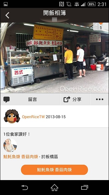 除了出遊作功課之外,有時突然想不到要吃什麼,腦中一片空白的moment,通常會在FB求救或是直接用OpenSnap開飯相簿APP來搜尋附近美食店家,現在開飯還沒有什麼店家置入,命中率還蠻高的,像我家附近幾個常吃店家真的都有中,連隱藏版的土魠魚羹都出現了,看來有很多在地人願意在OpenSnap開飯相簿分享。