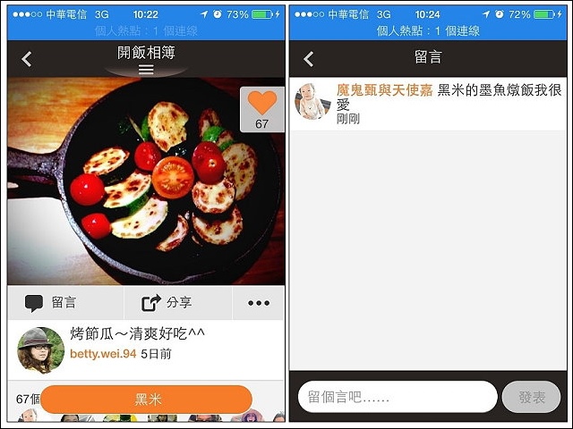 沒事滑手機時看看別人分享的照片,可以對別人上傳的美食照片讚好及留言,有次看到網友PO烤節瓜的照片,想看看是什麼餐廳,點進去才發現是信義區我也吃過的黑米,立馬留言黑米的人氣菜色墨魚燉飯是我的最愛!