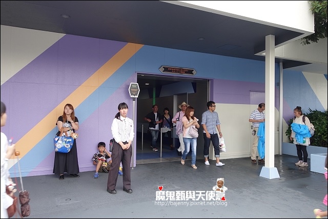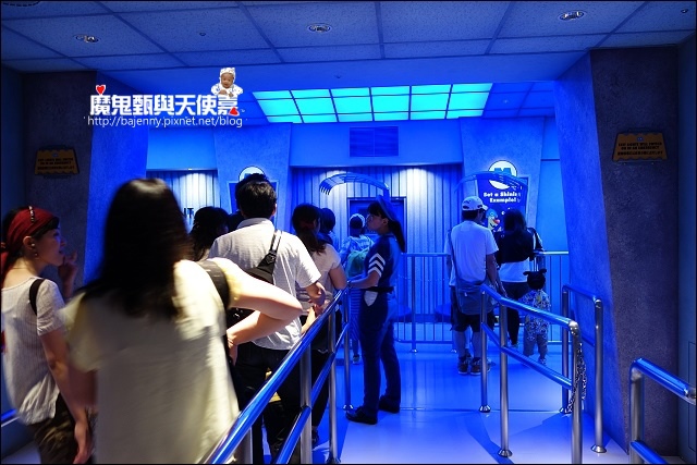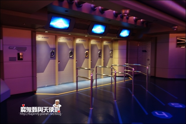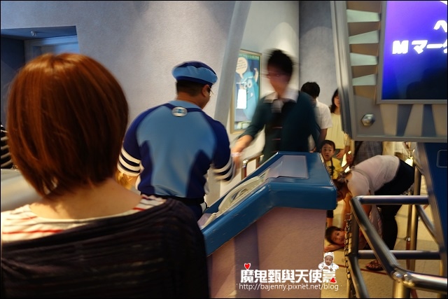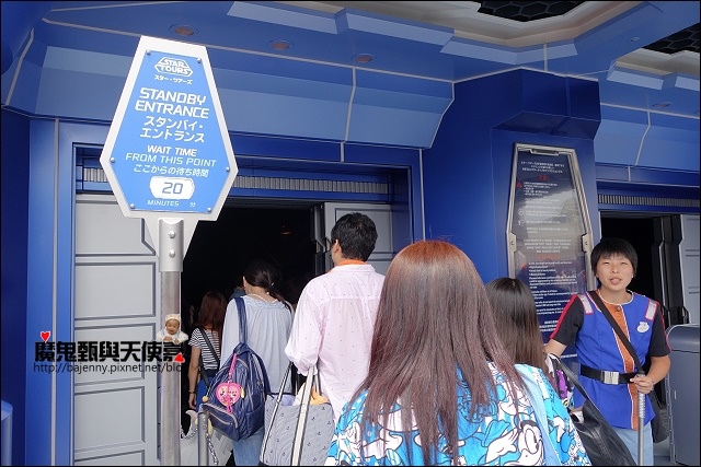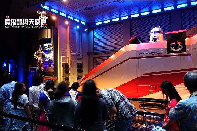 另一個也是需要拿FP的星際旅行冒險續航,這個是2013年春天全面改建重新開幕的項目!不過這天因為天氣預報會下雨,入園人數驟降,現場排隊只要20分鐘,我們就選擇直接現場排了!玩這個要繫上安全帶與戴3D眼鏡,隨身物品要塞入座位底下的網子中,主要帶你進入電影星際大戰的虛擬實境,看官網介紹,該設施有多達50餘種的冒險劇情,每次都會組合出不同的情節內容,過程中搭配劇情變化,座位也會跟著上下起伏或左右搖擺,全場叫到不行,最後機艙內的座椅還會震動好幾下!臨場感倍增,這個算有刺激!大家出來時都一付很興奮的表情。