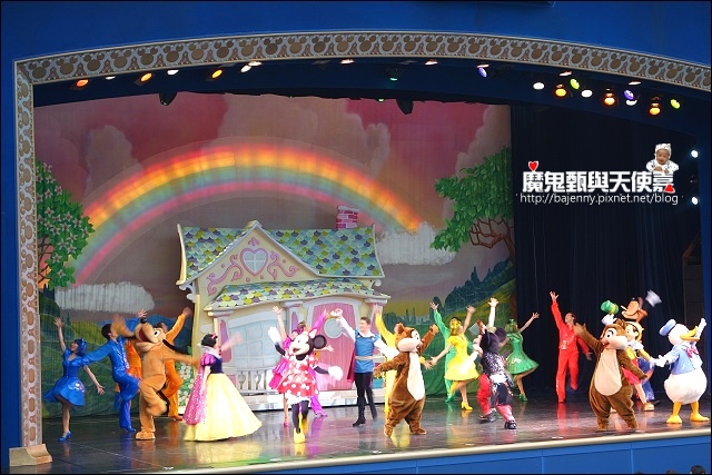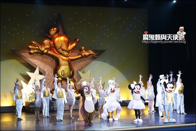 這個其實就是典型的歌舞秀,會有各種迪士尼經典角色交替,搭配迪士尼動人歌曲,像是蟲蟲危機、虎克船長、小飛俠等,連裘莉最新上映的黑魔女:沉睡魔咒都有出現耶,演出時間約30分鐘,這應該是當天唯一可以拍照的設施表演,只要不使用閃光燈、相機不高過頭部,沒什麼其他限制,我應該把握機會大拍特拍的,偏偏我的SONY RX100II拍到一半大當機,中段以後整個死掉沒反應,只好趕緊恢復原廠設定初始值,謝幕時才回復...