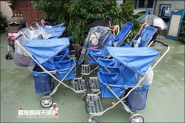 這款藍色嬰兒車為園區提供的租借款,就在入口的右側服務中心,一台700日元,不貴!入口處就有得租。