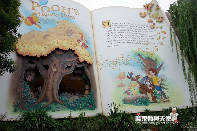 只有玩到人氣很旺的小熊維尼獵蜜記,這個也是要抽FP,排隊等候區的設計就像在翻故事書的頁面,好玩程度跟明日樂園的迷藏巡遊車有得拼,坐著可愛的蜂蜜罐出發,沿路佈置既精緻又立體,小熊維尼還會從天而降,只差這個比較沒互動,時間約4分30秒,尤其接近出口時會聞到蜂蜜的香甜味,因為爆米花XD。出來時別忘了逛出口的小熊維尼專櫃,裡頭有小日最愛的蜂蜜餅乾。