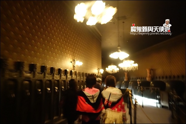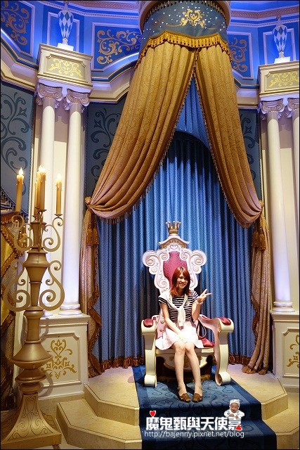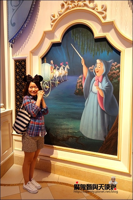 這裡其實還設了不少機關,人一坐上寶座上,寶座會點燈還有音效,然後拍神仙教母那幅畫時,如果開閃光燈拍,魔法時刻就會降臨唷(感謝凱莉哥仗義相助最後這張照片,我的小相機在出發前剛好閃光燈模組壞掉),這真的是超級隱藏版的設計,如果沒有園方人員在旁說明,誰會知道XD
