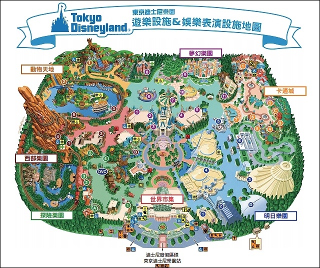 東京迪士尼樂園共有七個主題區,我們這次主要集中在明日樂園、夢幻樂園及動物天地一帶遊玩,只能說園區實在太廣,一天根本不夠玩!就連已經來過不下數次的小p也還有沒玩過的。