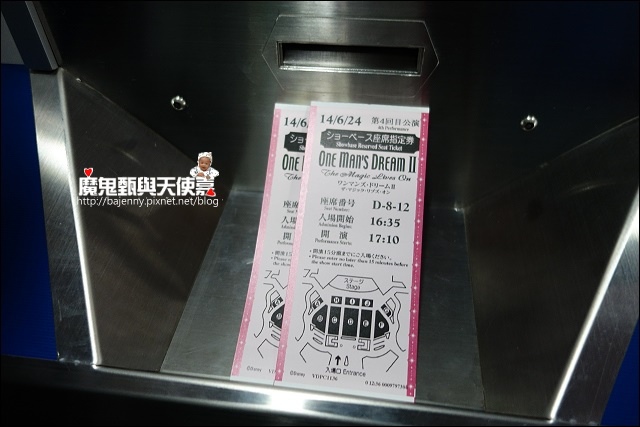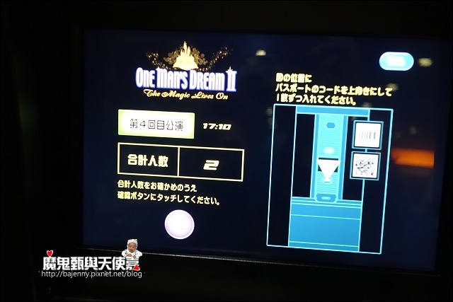 也就是一張門票一天只有抽一次的機會,抽票的地方在明日樂園大廳處,由電腦隨機取樣,沒選到就沒得看,有點像買樂透的感覺XD。如果真的沒中選也別絕望,還有一次機會,就是排第一場秀,每日第一場表演是不需參加抽選,即可直接進場觀賞,還有如果幸運遇到入園人數少的時候,時間到點隨意就座即可,整個場地約可容納一千人。