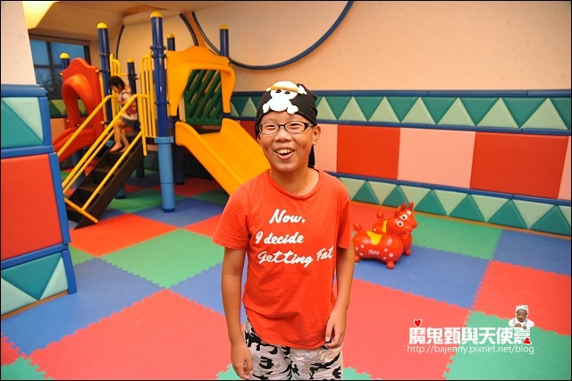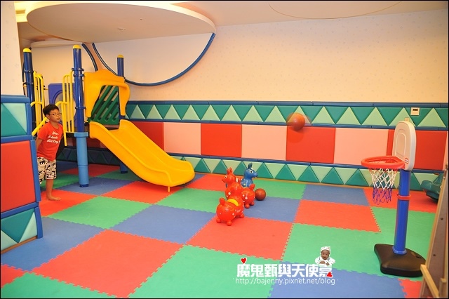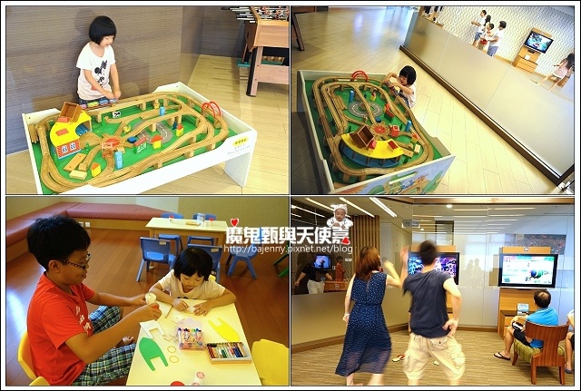雖然一住進來就下雨,但小孩也完全不想出去,尤其是野馬妹直接玩瘋,到吃飯時間還拖不走!三樓的健康休閒中心超好玩的,別說有小小孩最愛的溜滑梯,大一點的互動式影像遊戲可以玩,我跟允嘉都玩瘋了!