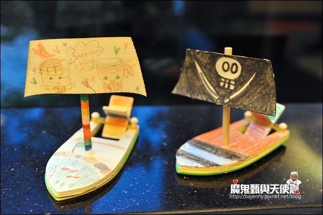隔天早上母子三人去做海盜船DIY,每間房可以免費做一份,後來還去打桌球、WII,三個玩到不想吃飯,整個欲罷不能...