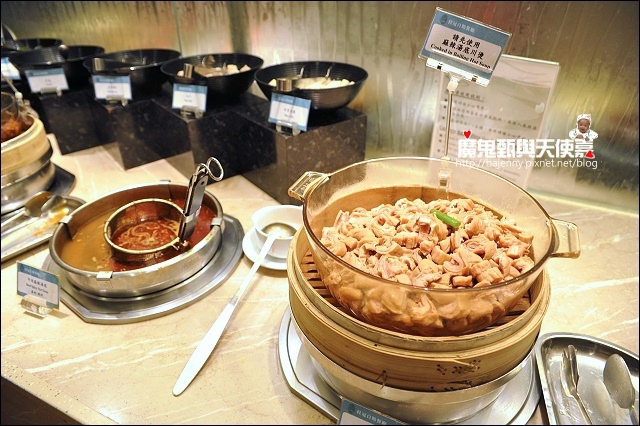 自助百匯晚餐選擇不少,服務生整理和補菜都蠻快的,我家專攻紅麴排骨、蔭瓜蒸魚、鮭生、烤鴨和炒麵都不錯吃,當然也有夾到不少地雷菜色。