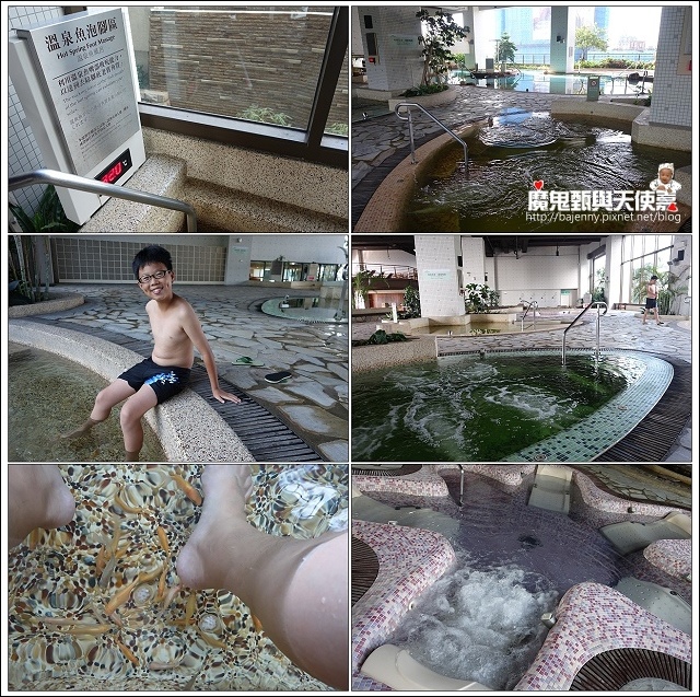 由於戶外戲水池和慢活SPA實在太好玩了!隔天一大早鳥大叔又陪著允嘉大哥下去玩水,獨享溫泉魚親吻腳腳的樂趣!怕曬的阿母則自動申請留在房間,爽陪阿妹睡個飽XD
