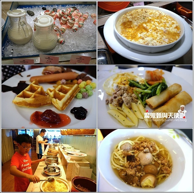 早餐一樣在桂冠自助餐廳享用,允嘉大哥極推擔仔麵,說湯頭好好喝,阿母是覺得麵條有點過軟,早餐菜色偏小孩會喜歡的,有涼麵、義大利麵、鬆餅等,兩隻才第一輪,就各自先拿養樂多回來灌,一早就給我喝冰的,可惡!