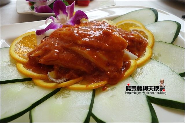 三道自選的蘭陽風味盤,阿母一時失策,忘了小孩可能不太敢吃這些,失手點了梅汁蕃茄、紅糟魷魚及五味中卷,這些菜份量比想像中的大盤很多,果然搞死自己,小孩都不太吃,我跟鳥大叔撐個半死還是吃不完,後來還打包紅糟魷魚回來當下酒菜(鳥大叔跟小叔每周一喝...)