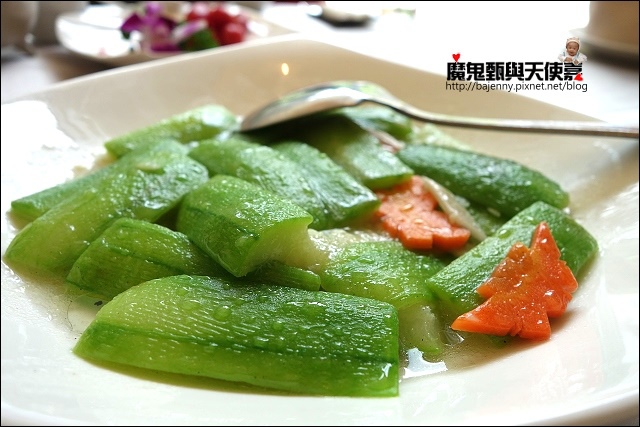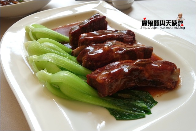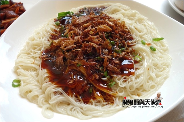 主廚私房菜是蘇杭無錫骨,宜蘭特色蔬菜是溫泉絲瓜,風味主食是雞油拌麵,三個都不錯吃,只是拌麵份量又是好大!可惜沒有三人精選特餐的選項,不然我們兩大兩小應該點三人是比較適合的。