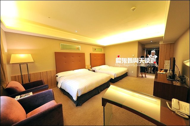 首都大飯店的客房非常寬敞,每間都是15坪起跳,因為是以商務客層為主,所以房間全是雙人房型,就我們這間有雙床,床躺起來非常舒服,不過我們這間房的門有點奇怪,不會自動帶上,也沒有透視孔和反鎖鏈,有人來敲門是要怎麼決定開不開?