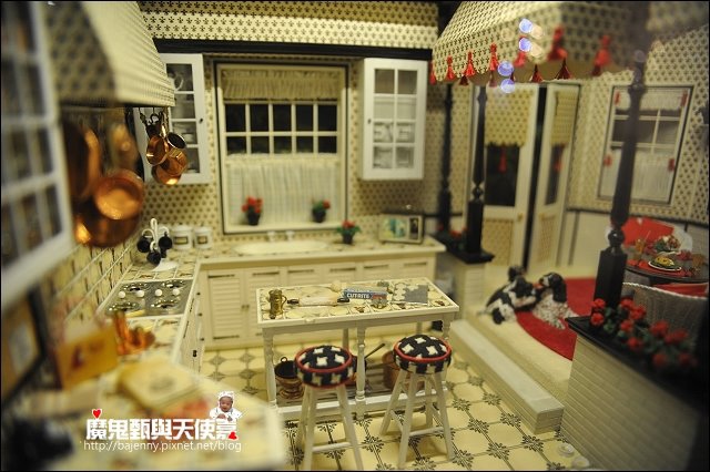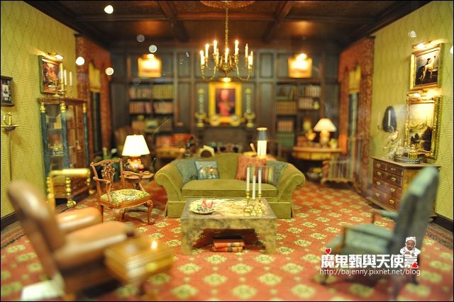 房間、客廳或是廚房都1/12的縮小比例製作,彷真到燭火會隨風明滅,迷你電視也真的在播送,據說還有酒瓶裡面裝著白蘭地,彷復有精靈住在裡面,讓人聯想到借物少女的劇情。