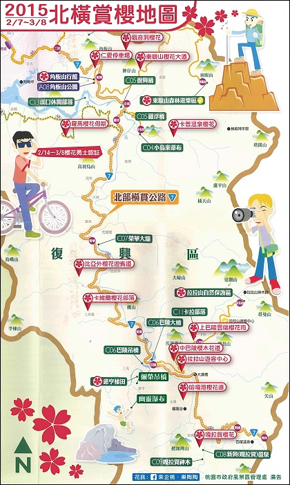 最後再附上桃園市政府觀光旅遊局愛企桃的北橫賞櫻路線圖