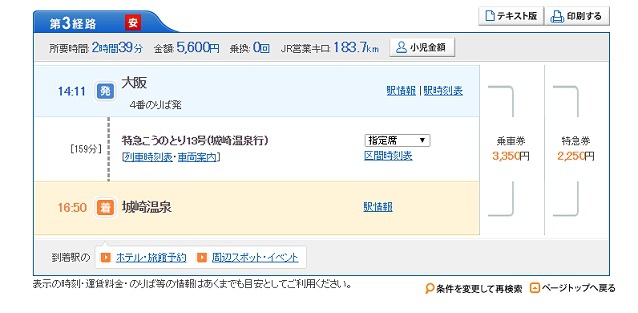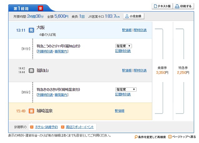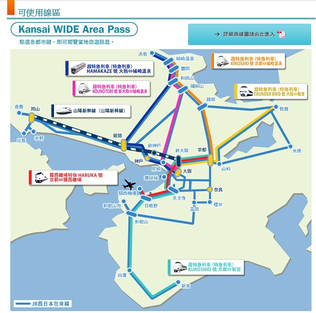 這裡離大阪2.5個小時,買張廣域JR West Pass就可以過來,如果可以搭直達車最快,不然就是要在福知山換線,單程車資就要5,600日元,買張四日的JR PASS(7,200日元),來回城崎溫泉就回本了。而且這可是被日本經濟新聞選出來的NO.1,比幾個知名的溫泉區(有馬、道後、草津)排名還前面哩。(此圖取自JR西日本官網)