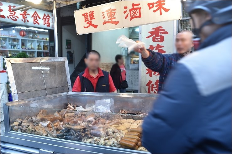 如果來夜市不吃到滷味心情很不美麗的話,網友留言推薦阿桐阿寶隔壁的這攤雙連滷味,是個在地隱藏版的替代方案,走路只要5分鐘,重點是不用排隊,口味也不輸!!老板兄弟檔很客氣,這家的雞腸是大熱門,滷味本身就有點鹹,滷汁沾醬和辣包可以另外給,有點類似下營滷味(上營大屋)外帶的吃法。