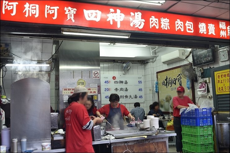 這間阿桐阿寶四神湯是標準觀光客愛店,平常我們來寧夏夜市是不會來吃,但因為就在雙連滷味隔壁,想找個地方吃滷味就坐下來囉。四神湯加米酒是主力,肉粽肉包和燒賣較一般,允嘉大哥肉粽跟學校合作社賣的口味好像。