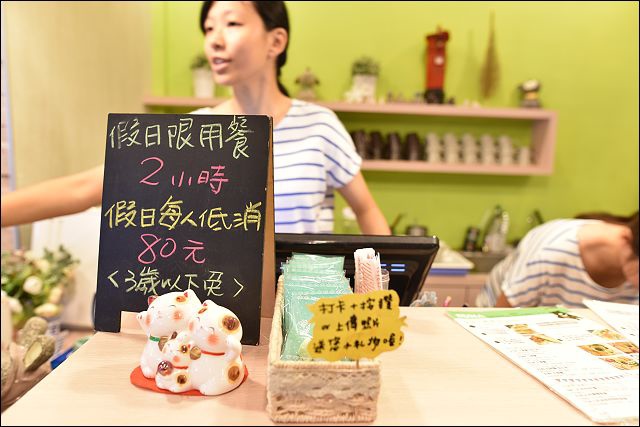 假日低消每人80元(3歲以下免),假日用餐限時2小時,我們非假日來還是有低消,店員說每個人都需要點一份餐(帶小小孩過來怕會吃不完)。