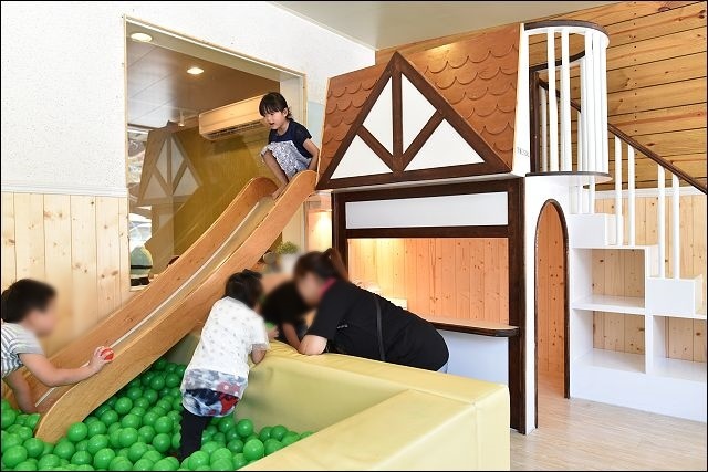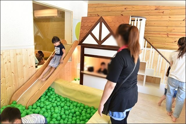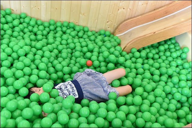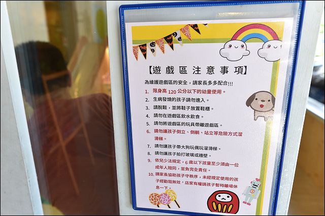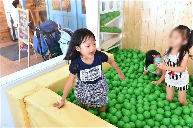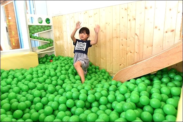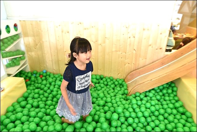 來這邊的重點就是入口右手邊的小小遊戲間,限身高120公分以下的幼童使用,生病發燒的孩子請勿進入。來之前以為裡面是沙坑,不知道已經改成球池溜滑梯了!