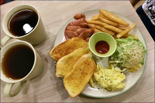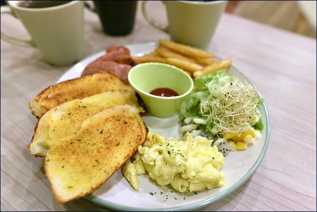 170元的三號餐,有瘦培根、火腿、德國香腸、香蒜麵包、沙拉、炒蛋、脆薯和紅茶,口味都還不錯。