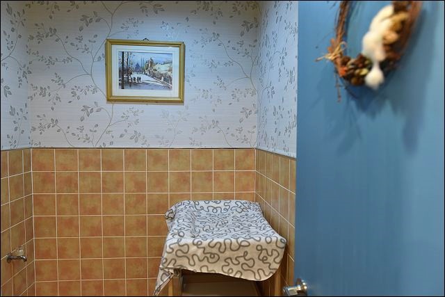廁所附尿布檯,這個IKEA的尿布檯很好用,可以減少新手爸媽歪腰的機率,我們家買一座,幾個兄弟姐妹都有用到(代代相傳)。