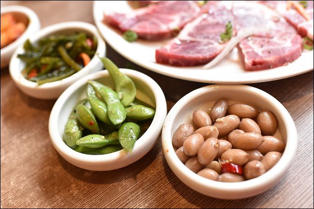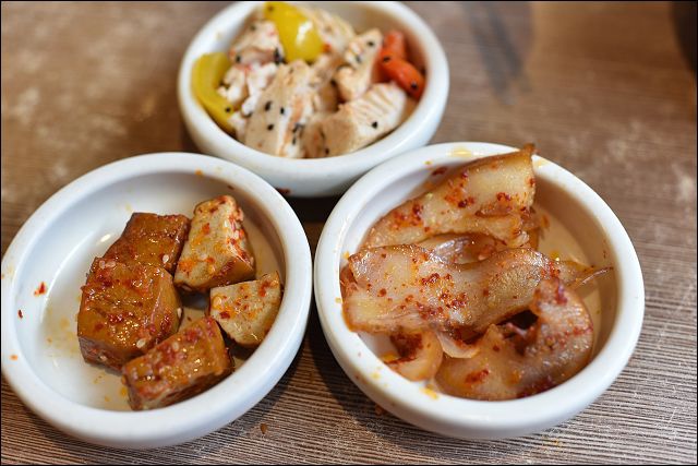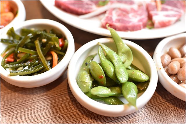 雖然看板上寫著有近50道免費小菜可選,但現場看好像沒那麼多選擇,在新莊店拿了幾樣小菜像是毛豆、豬頭皮、台式泡菜、四季豆的口味都不錯,當然也有踩到雷啦!