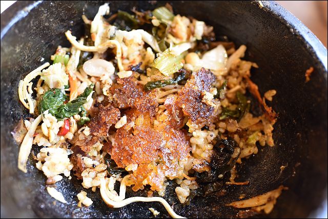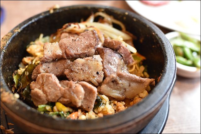 招牌石鍋嗶嗶飯,新莊店180元/板橋店190元,有不辣/小辣/辣三種辣度,鳥大叔覺得賣相佳,口味也不錯,還可以自己添加想吃的小菜,過癮!