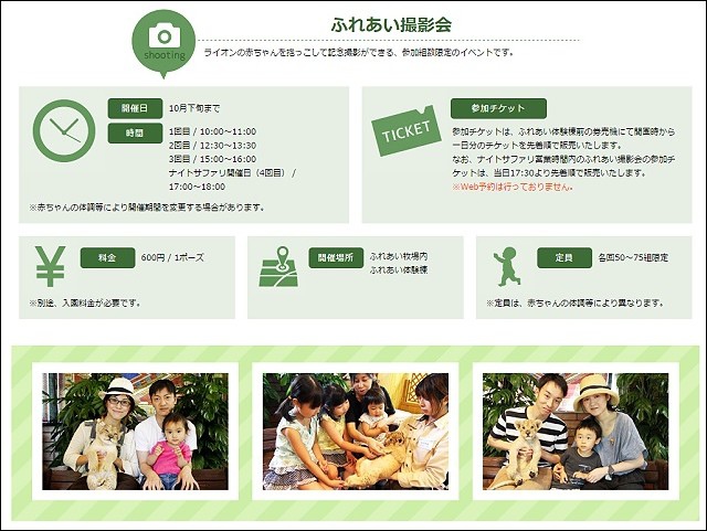 一結束遊園車的行程,我們立馬衝到記念攝影區,可以跟8/4才出生的小獅子合影留念,每天有限制場次及人數,必須事先抽票,然後時間到再去排隊,一天三回,一張照片600円,可以很多人一起拍,但抱的人只能一位,不然就是要多花錢啦。不想花錢的話,也有餵奶跟特別展示的服務,包含拍照這三種都只到10月下旬,之後小獅子就長大啦!這種真的是可遇不可求,大家可得好好把握最後的這一個月的時間!(※資料照片皆取自官網※)