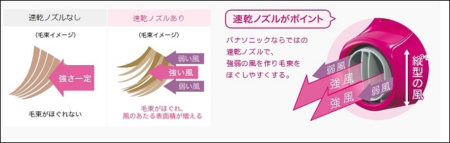 大風量負離子吹風機EH-NE57,適合髮量較多的女生。擁有外置負離子設計,可以同時吹出強風及弱風,並且擁有速乾護髮吹嘴。