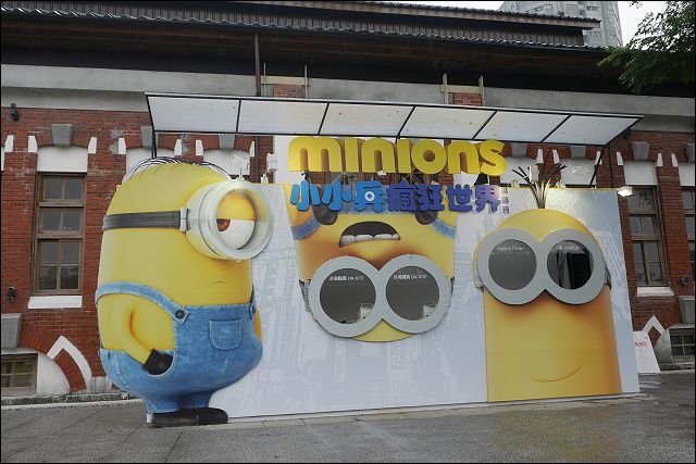 小小兵展銷會在華山藝文特區的紅磚區舉辦,戶外有三隻超大型充氣小小兵坐陣歡迎大家。