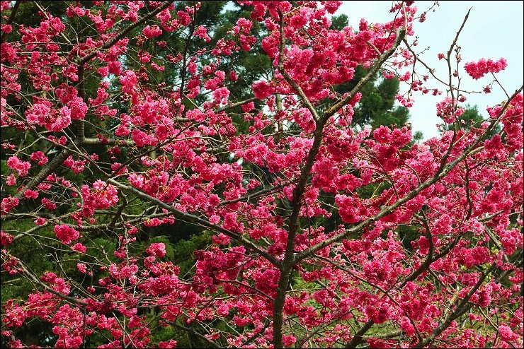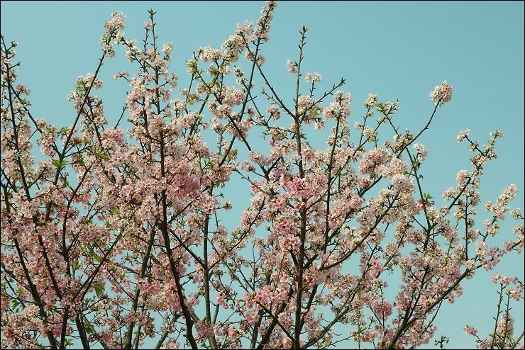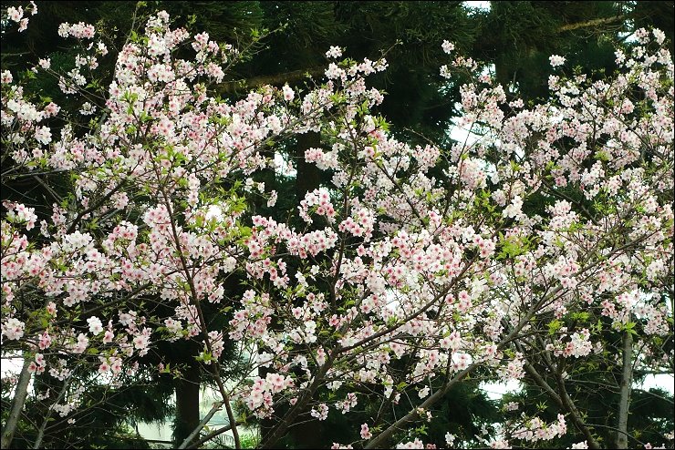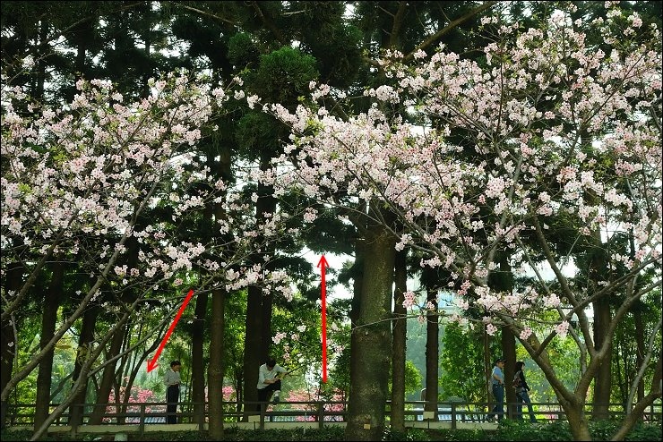 櫻花大道隔壁條的修善寺寒櫻的花況也還不錯,早上這裡曬不到太陽,所有遊客都集中在這區賞櫻。