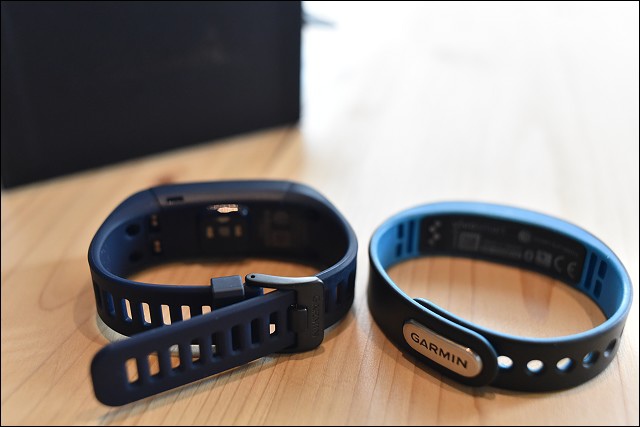 前一代Garmin vivosmart是用扣環固定,而這款新出的vivosmart HR改採一般手錶常用的固定方式,雖然感覺沒那麼cool,但運動時比較不用怕鬆脫甩出(不過前一代也沒有掉下來的經驗啦!!)。另外這一代的錶帶材質也變得比較軟,新出的vivosmart HR脫下來會有心率感測器的壓痕(就像mobile01上的評測文說的那樣),有時候戴太緊其實會有一點點不舒服。