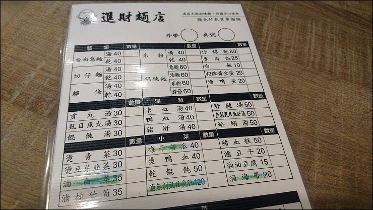 進財麵店菜單,價位在板橋算偏高一點,但走健康路線還是值得鼓勵。