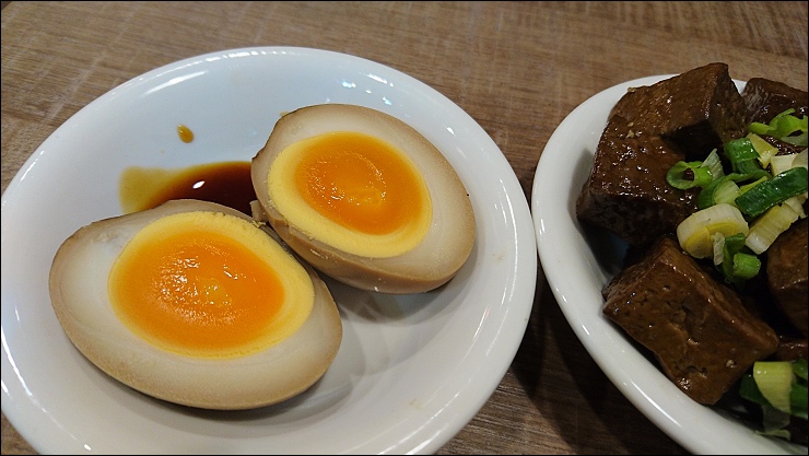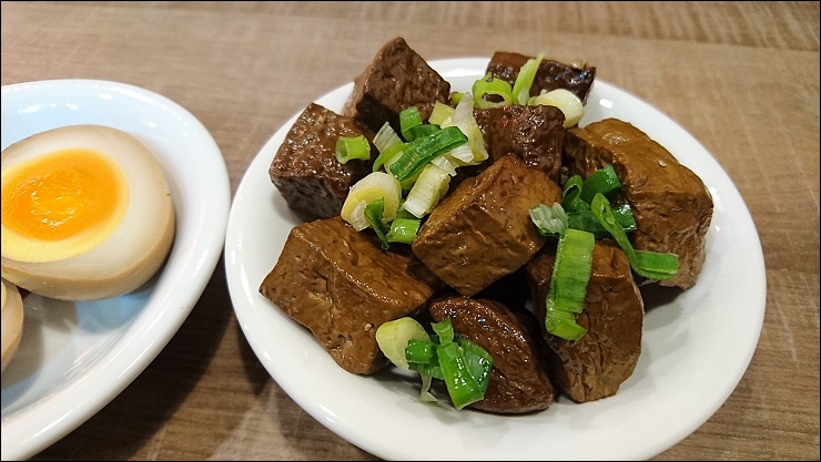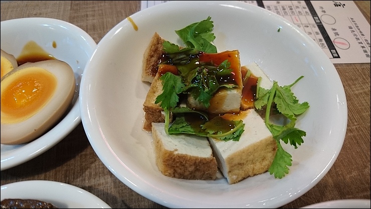 招牌黃金蛋、油豆腐和滷豆干,鳥大叔覺得不錯,甄大嬸覺得一般,現在黃金蛋已經到處都吃得到,像石安牧場溫泉蛋連便利商店都買得到。