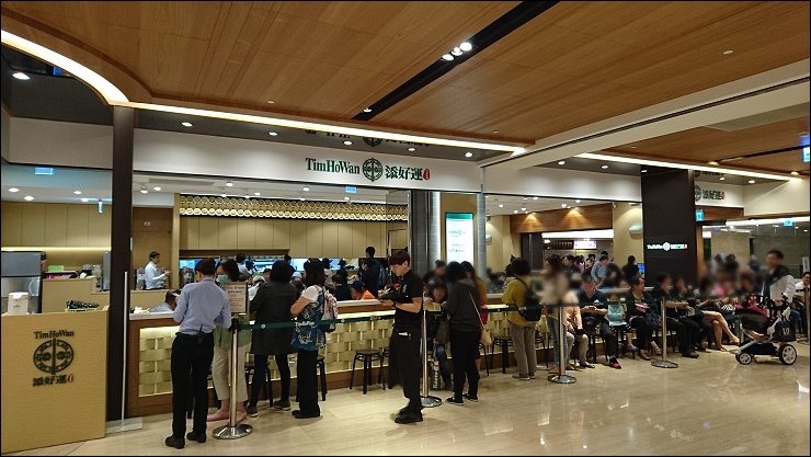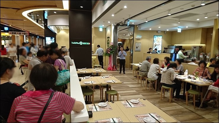 香港添好運點心專賣店就直接開在板橋大遠百B1鼎泰豐隔壁轉角,排隊人潮分成二區,一區在門口一區轉角空地,前面門口這區排隊有提供椅子,排隊前進速度還算快,不用等很久。以前這裡好像是星巴克,現在搬到大遠百2樓去。