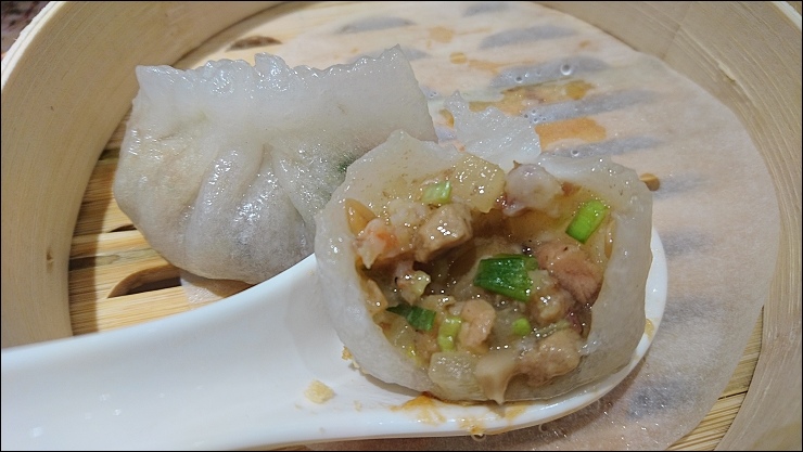 板橋店限定的潮洲蒸粉粿,外皮類似台灣的水晶餃,內餡有蝦B、肉末、蔥、芹菜和花生,蠻特別的組合,鳥大叔還蠻愛的。