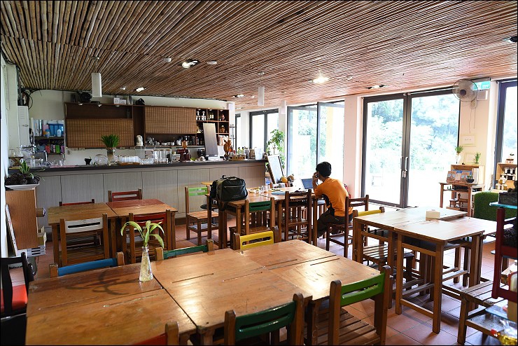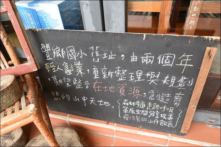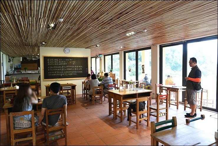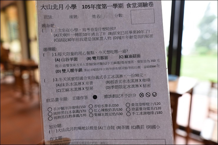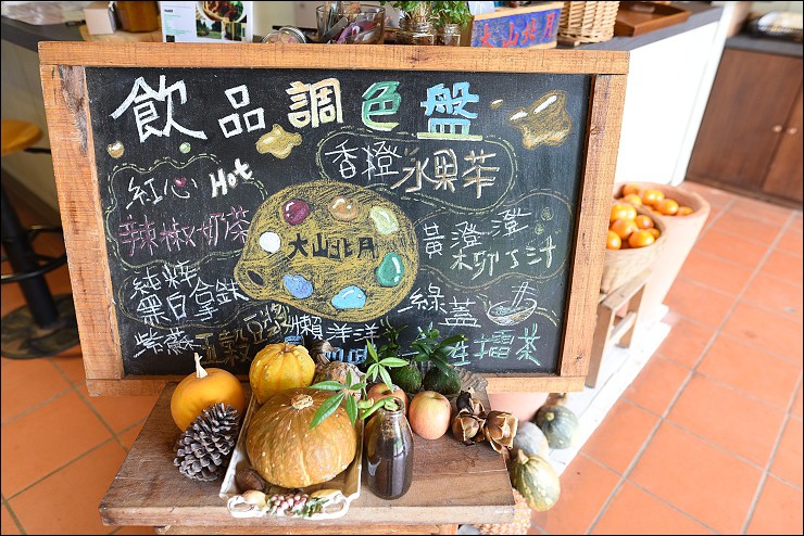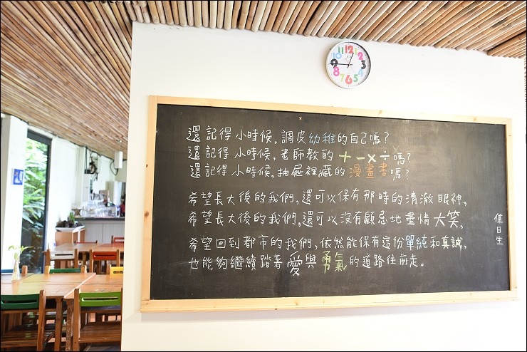 大山北月的餐飲空間有課桌椅有黑板,布置成被綠意大包圍的教室,在這種迷你森林小學上課也太幸運,除了可以呼吸新鮮空氣之外,應該都不太用怕近視吧!