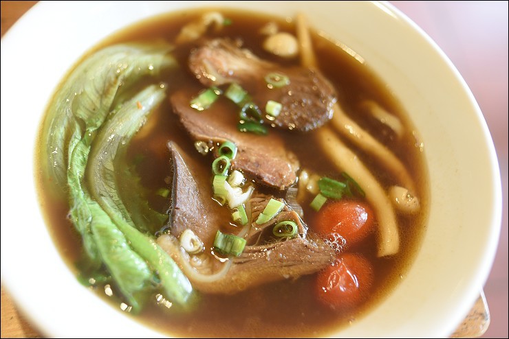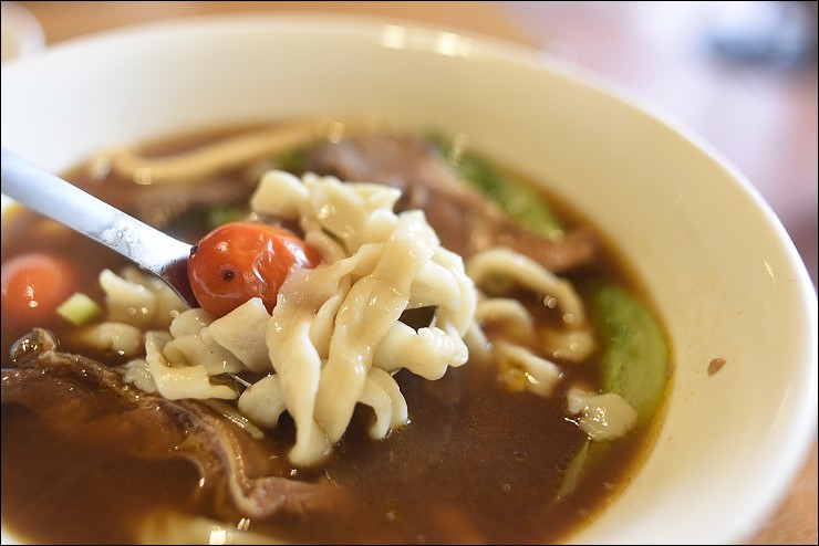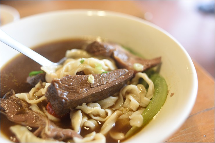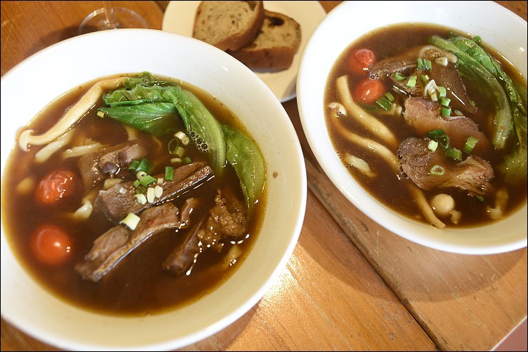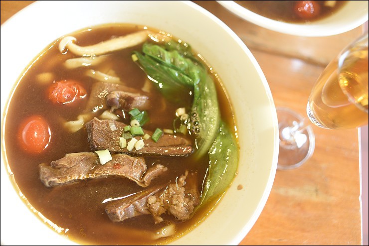 羊肉麵和豬肉麵的湯頭好像都一樣,肉香完全吸引了店狗的注意力。