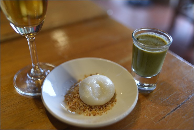 餐點提供湯麵、火鍋和飲料,雙人暖羊鍋是冬季限定沒得點,大叔團點了山谷羊肉麵和彎月豚麵,350元套餐包含東方美人香檳(東方美人茶裝在香檳杯)、窯烤麵包、手工麻糬、養身擂茶。