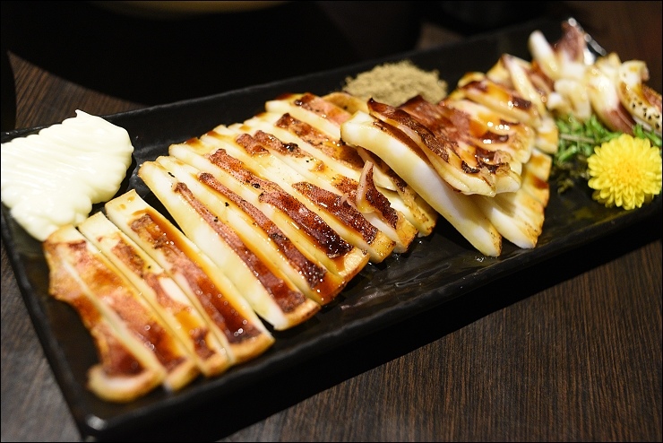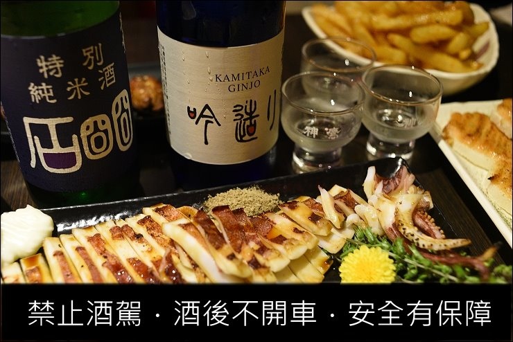 招牌一夜干和澎湖現流透抽等海鮮類,老板推薦搭配清酒。今天準備的兩支日本酒深獲同行友人好評,吟釀具有細緻優雅的花香,而純米酒據說具有吟釀等級,也是非常順口。