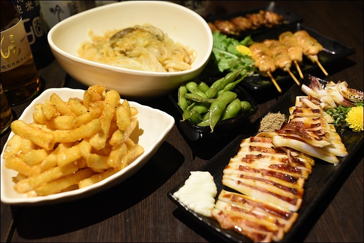 請老板推薦幾道好評菜色給我們當下酒菜,像是招牌炸薯條、招牌一夜干、鬱金雞翼、明太子雞肉串、鬼汁牛小排和現流澎湖透抽等等。