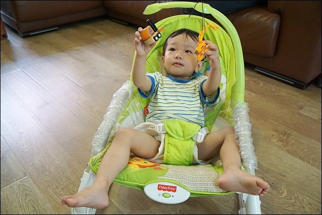 再來分享這個費雪搖搖椅,小貝比的時候它超好用的,寶寶放在搖椅上,媽媽我可以邊看電視,單腳動一動就可以讓搖椅搖動,小寶寶自己睡爽爽。