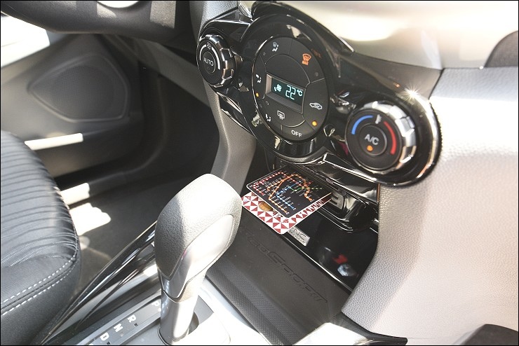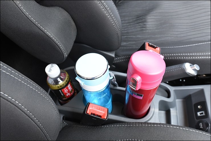 家庭出遊大大小小東西帶一堆,ECOSPORT特別設計20個收納空間,保持車內不雜亂!像是夏日出遊必備的置杯架就多到不行,全家人的水瓶和飲料都找得到地方放XD