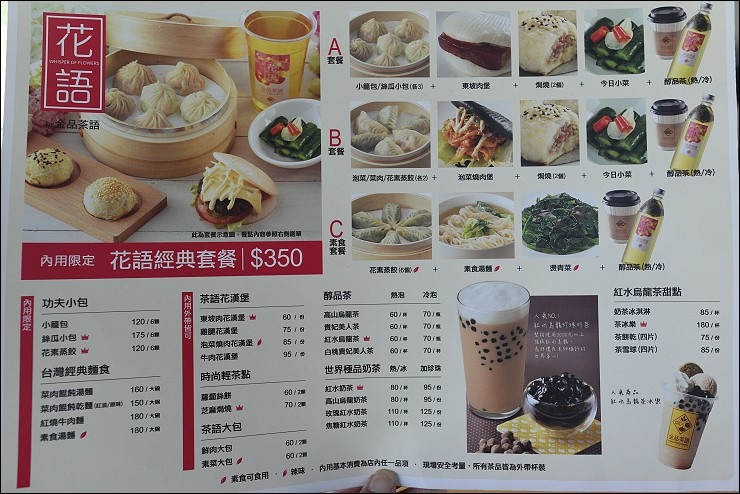 花語餐廳除了提供小籠包、台灣漢堡(割包)和牛肉麵等輕食之外,還有好喝的台灣茶品,紅水烏龍茶冰樂推薦必點,爽度絕對不輸星巴克的星冰樂。