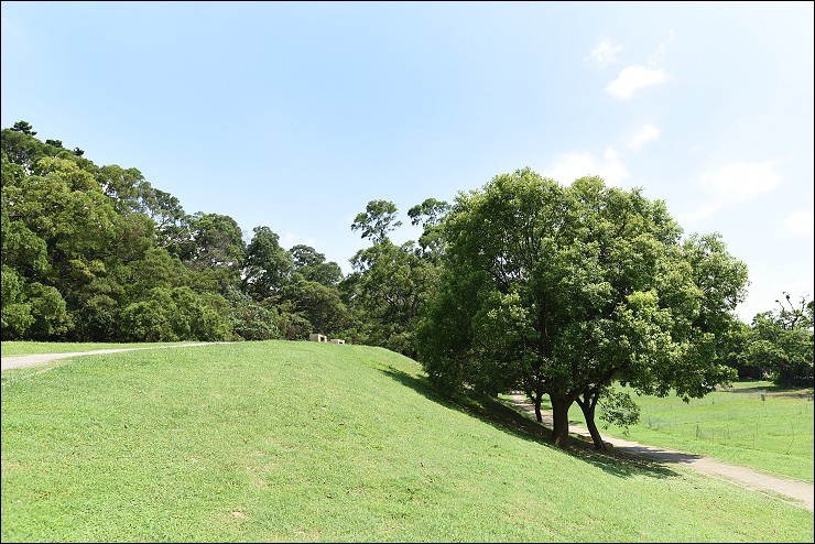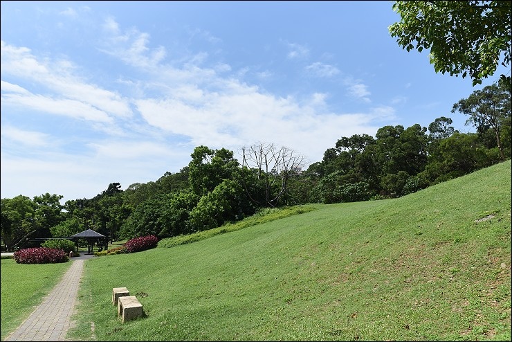 這裡原本是淡水高爾夫球場的球道,新北市府收回改造成公園後,邊坡草皮已經成為婚紗攝影師的秘密基地,這天才待半小時就碰到4,5組新人來取景。