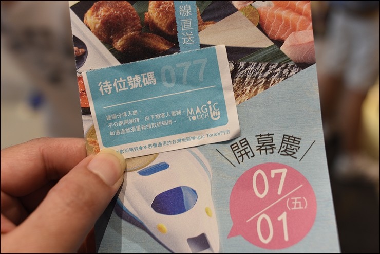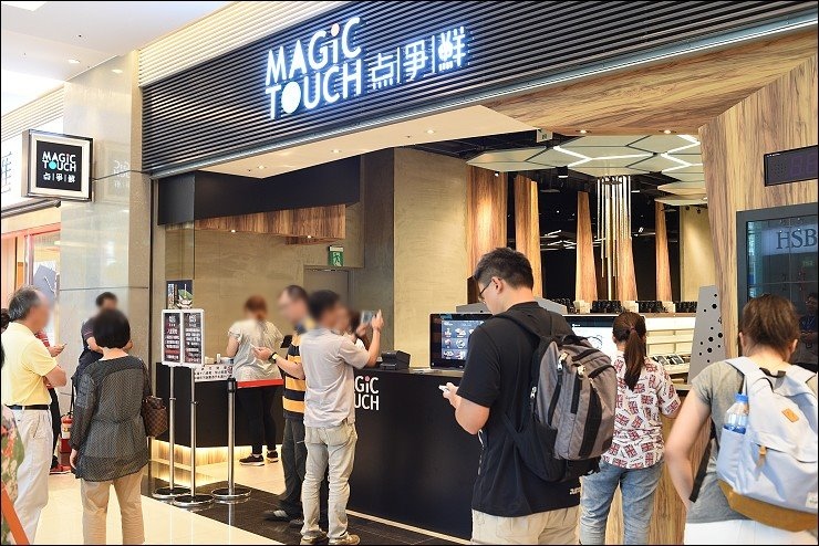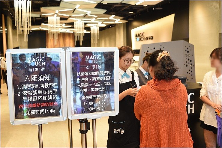 電扶梯搭到一樓右轉就會看到Magic touch點爭鮮的店面,6月底前都是試營運,開放時間12:00~14:00和18:00~20:00二個時段,可以先拿號碼牌。