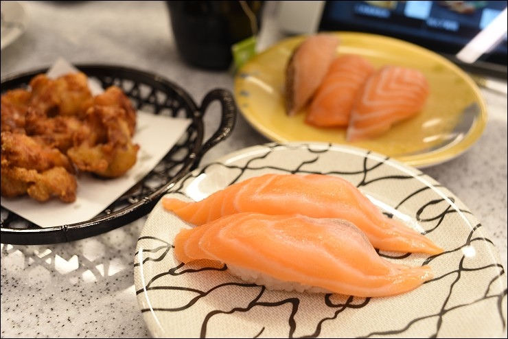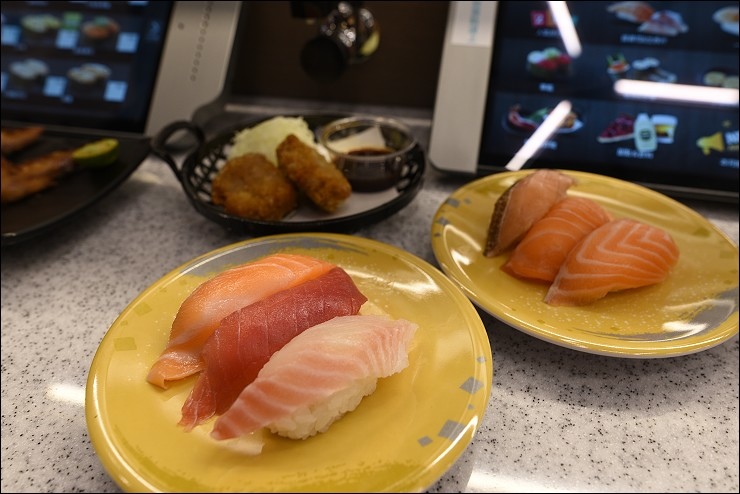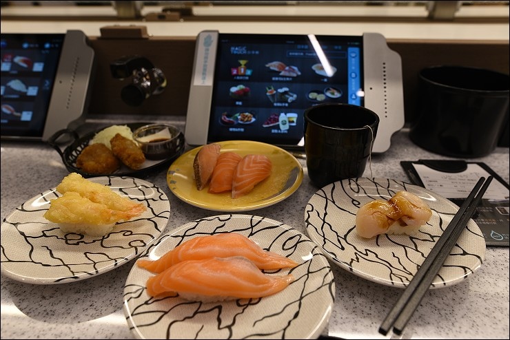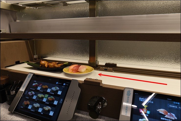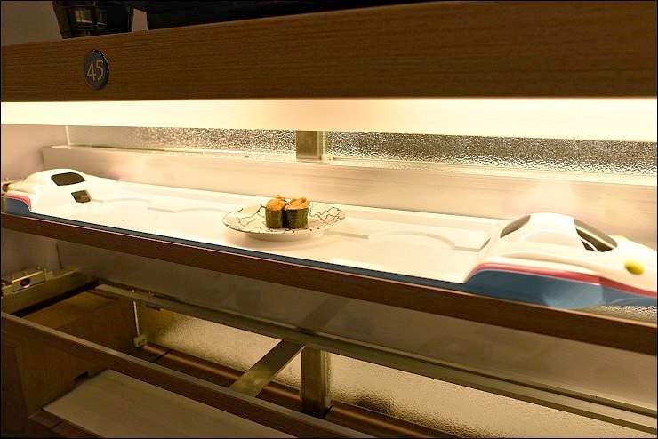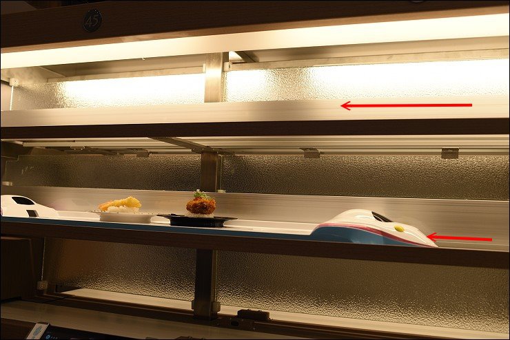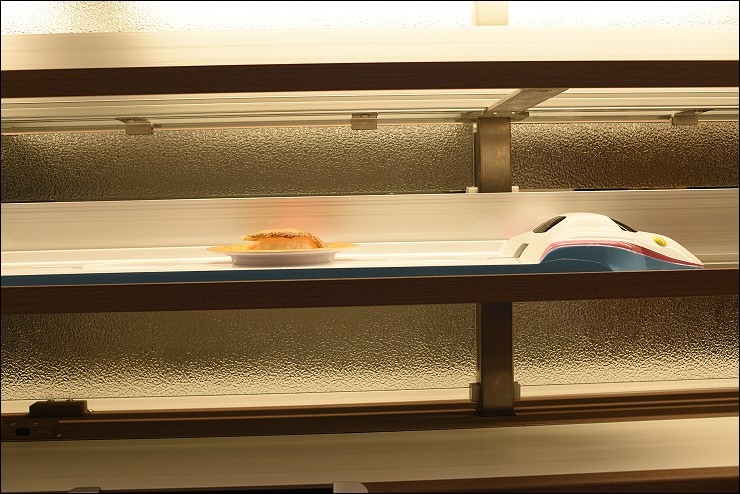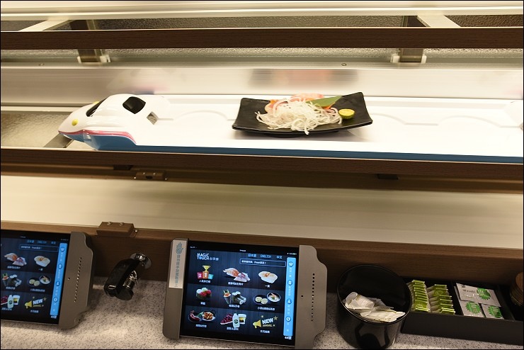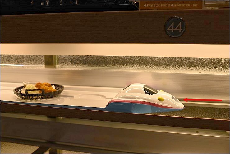 只有最上面二層有新幹線送餐,有時候運氣不好,會是最下層的輸送帶送餐。