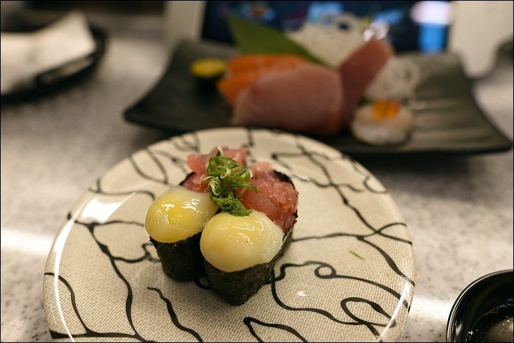 瘋狂亂點一通的大叔吃喝玩樂攝影團,竟然出現小顆的鳥蛋溫泉蛋軍艦,不過有些是地雷,有些還不錯喔!