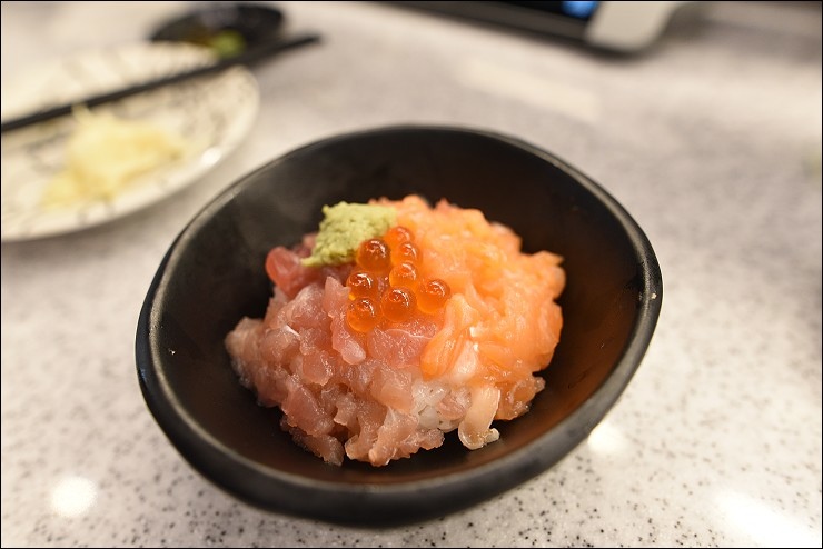 人氣排行No1的鮭魚三味40元,CP值和口味都還不錯!